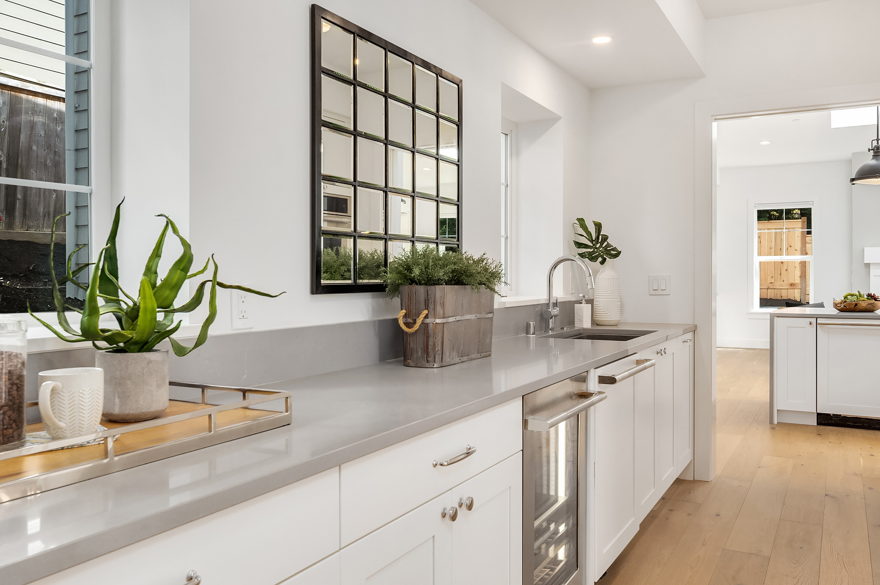 Every detail was considered—from the warm coastal palette and natural textures to the seamless indoor-outdoor flow designed for entertaining and relaxation. With five bedrooms, four and a half bathrooms, a dedicated home office, and a spacious bonus room, the flexible two-level layout delivers both luxury and functionality. A private driveway leads to this serene retreat, where the rooftop deck invites evenings spent under the stars, just minutes from downtown Kirkland and the waterfront.