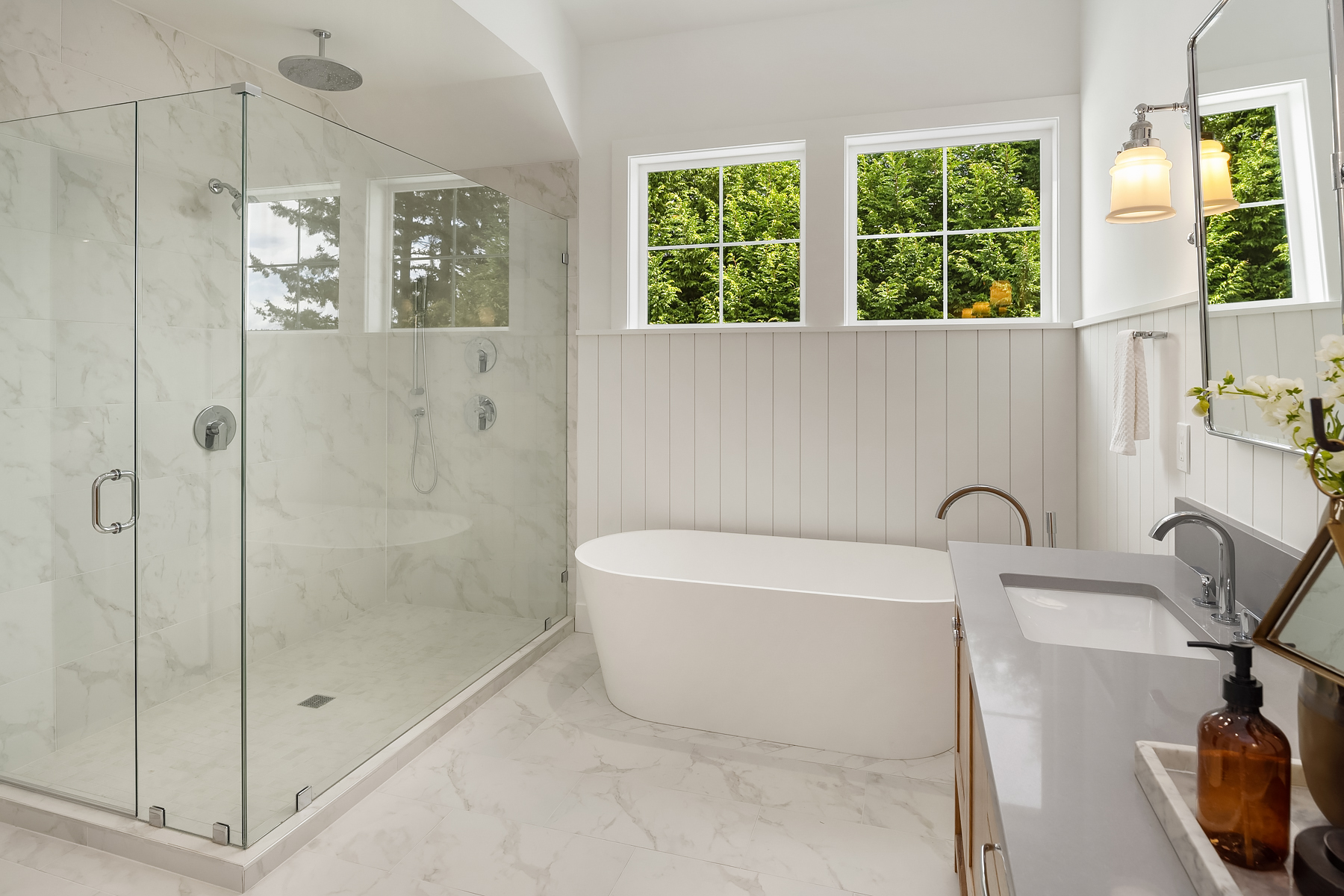 Five bedrooms and four-and-a-half bathrooms, including a primary suite with spa-style bath